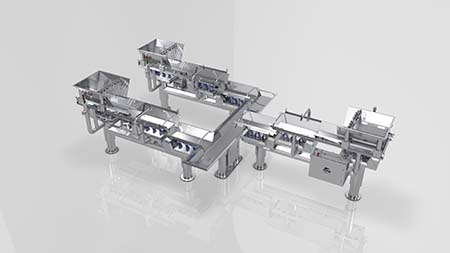 The tna roflo VMBS 3 is suitable for a variety of infeed methods, including manual or bulk or directly connected to the processing line. Output can be fed onto a variety of distribution systems, including tna roflo vibratory, horizontal or belt conveyors.